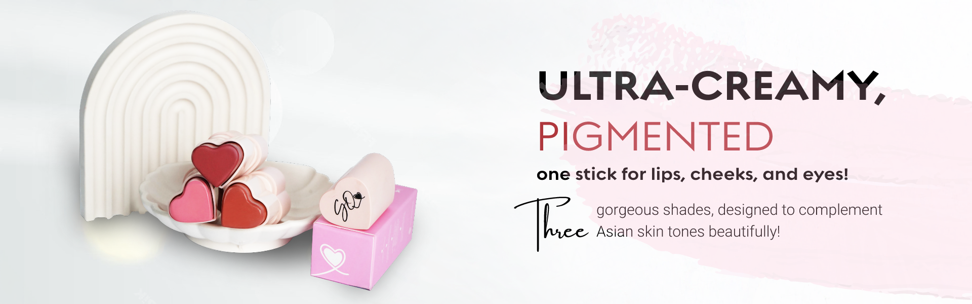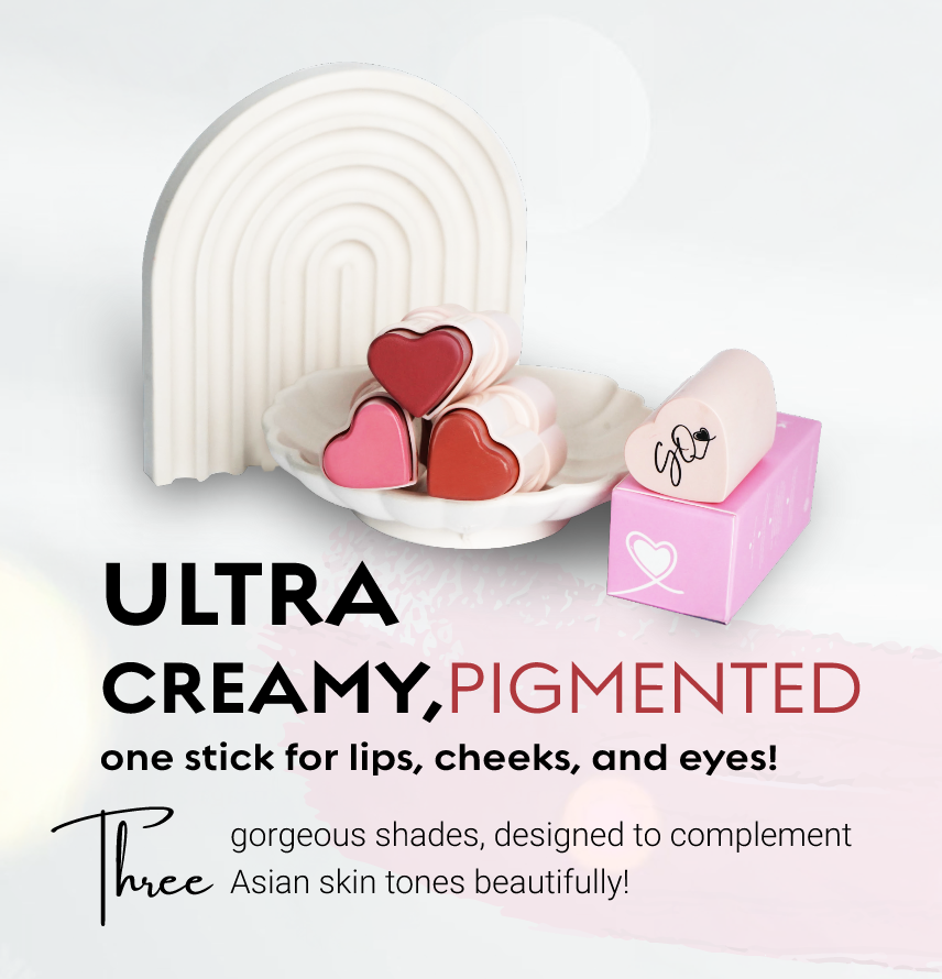 Creamy heart-shaped blush sticks are available in three beautiful shades: Candy Rose, a soft pink; Rosy Crush, a vibrant rose; and Sweet Peach, a warm peachy tone. Each shade is a silky, buildable formula that blends effortlessly to give a fresh, youthful glow.
